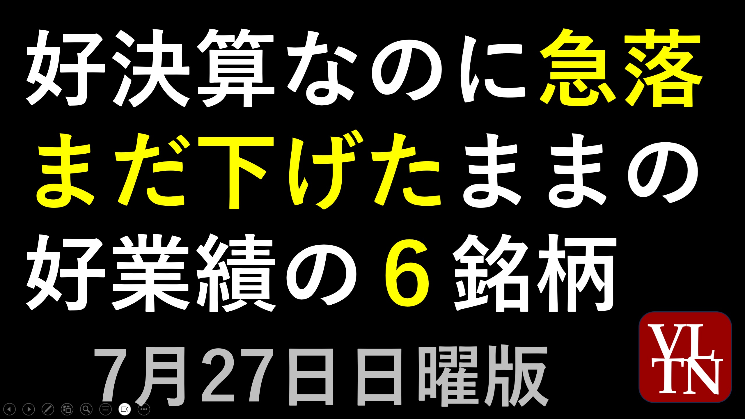 好決算で急落6銘柄と決算スケジュール20250727(日)