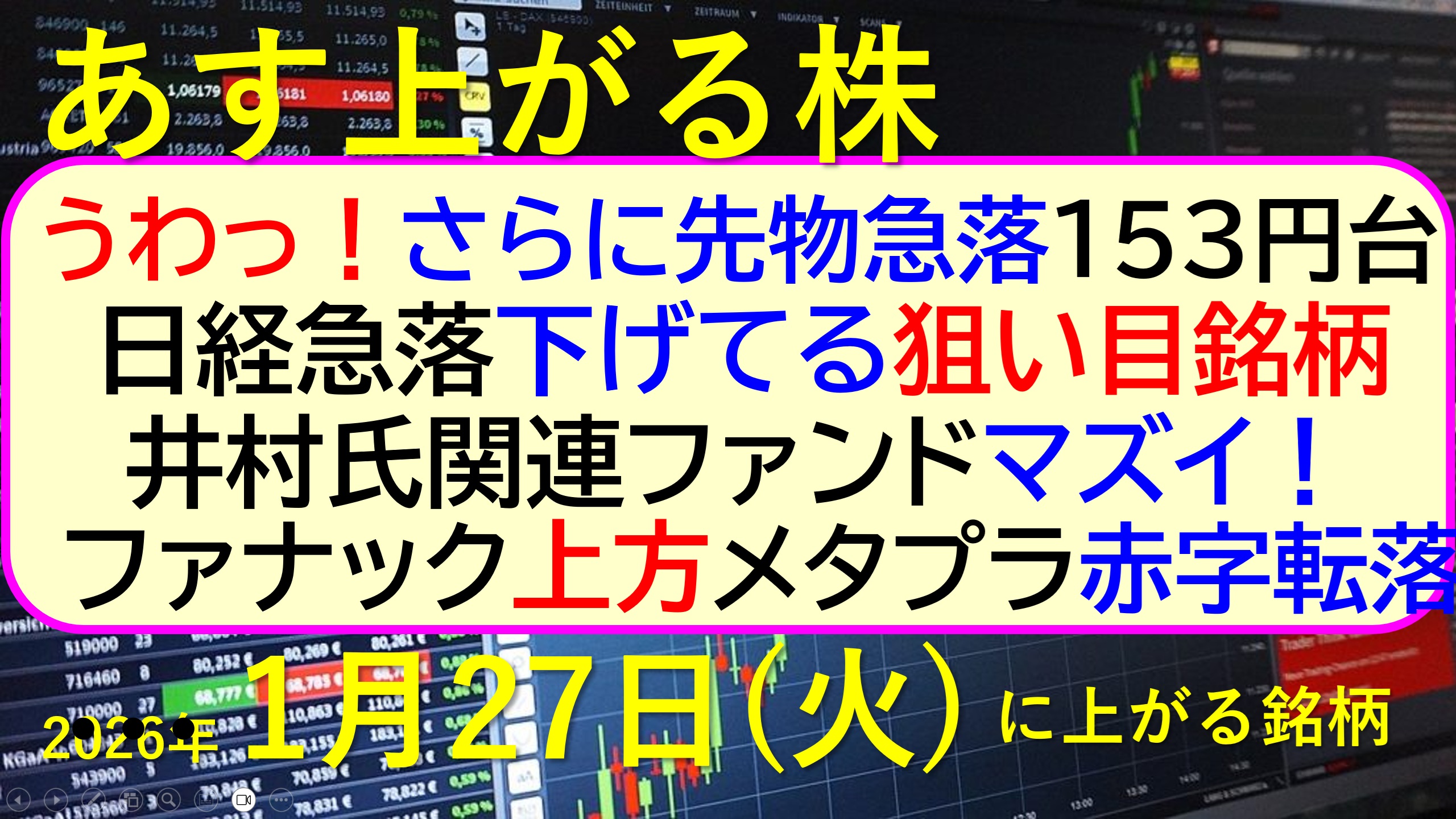 2026年1月27日(火) デイリー動画 2026.01.26 この情報へのアクセスはメンバーに限定されています。ログインしてください。メンバーシップログインIDパスワード ログイン状態を保存する 新規ユーザー登録ユーザー名*名*姓*住所*住所2市区町村*都道府県*郵便番号*国*Phone*メール**必須項目