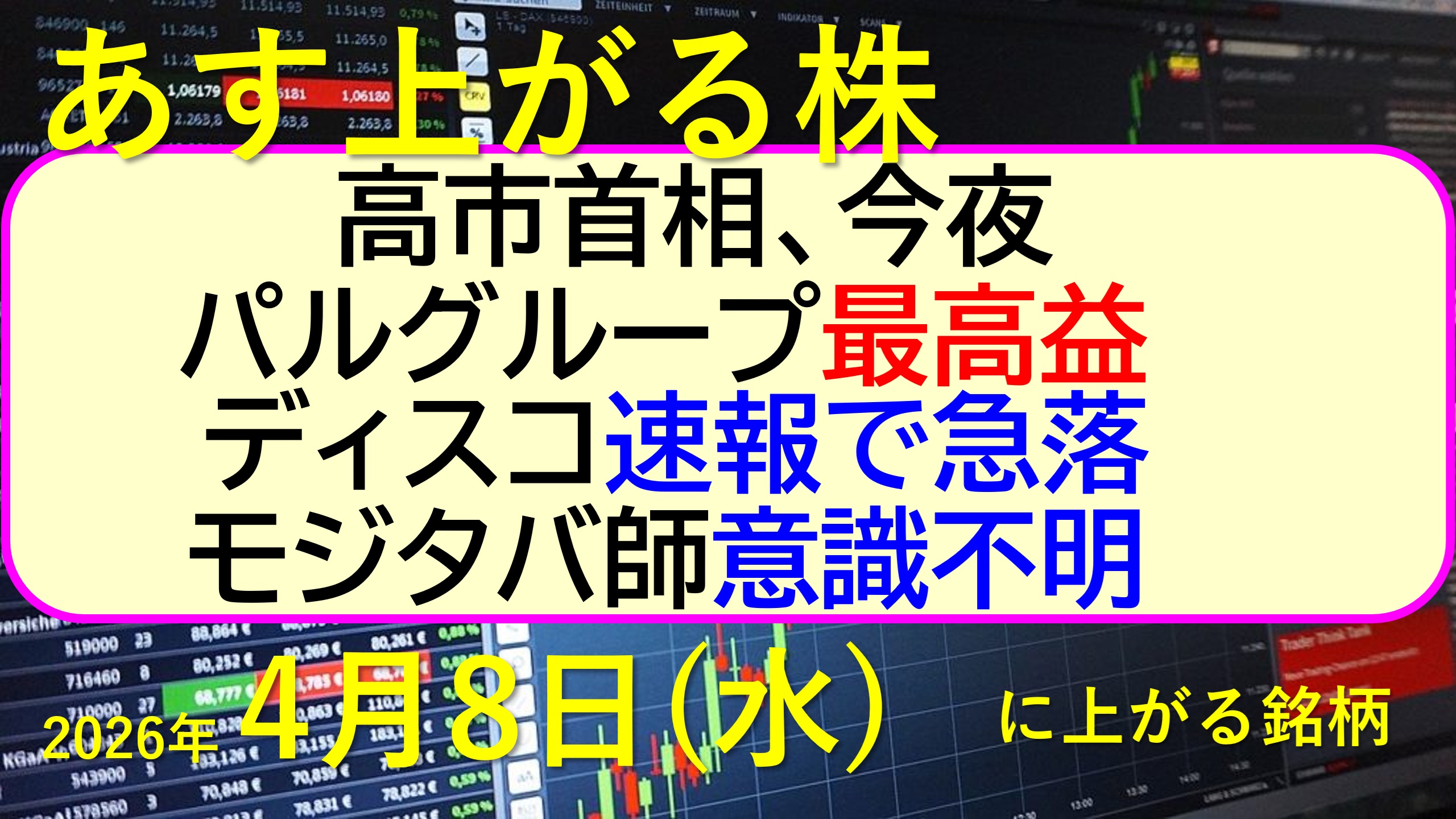 2026年4月8日(水) デイリー動画 2026.04.08 この情報へのアクセスはメンバーに限定されています。ログインしてください。メンバーシップログインIDパスワード ログイン状態を保存する 新規ユーザー登録ユーザー名*名*姓*住所*住所2市区町村*都道府県*郵便番号*国*Phone*メール**必須項目